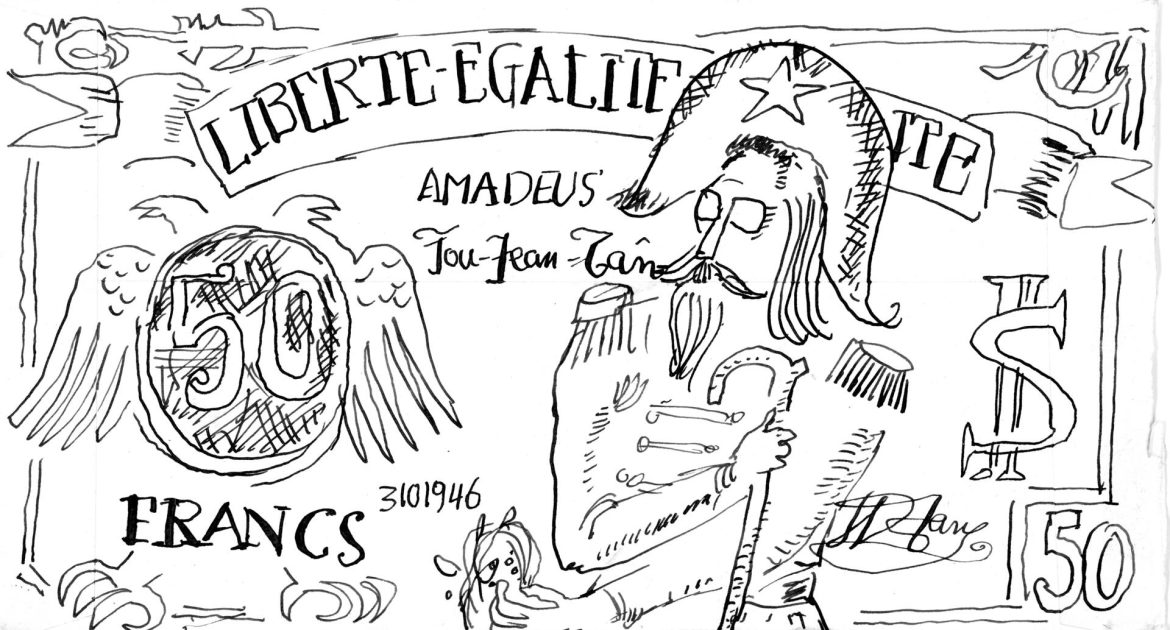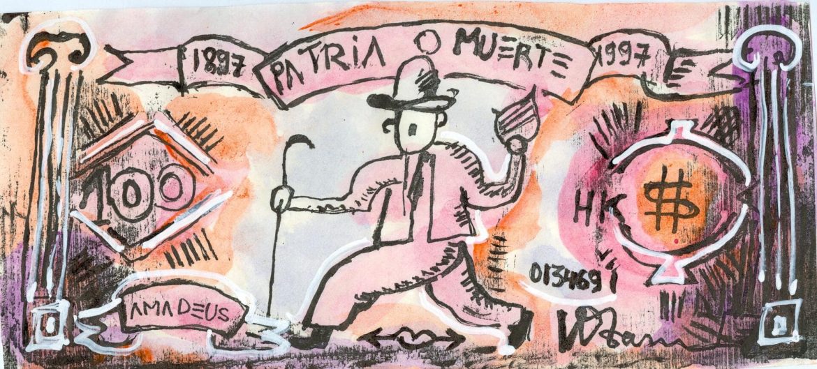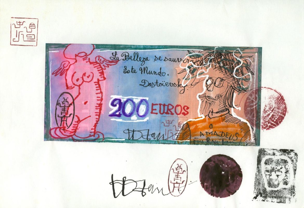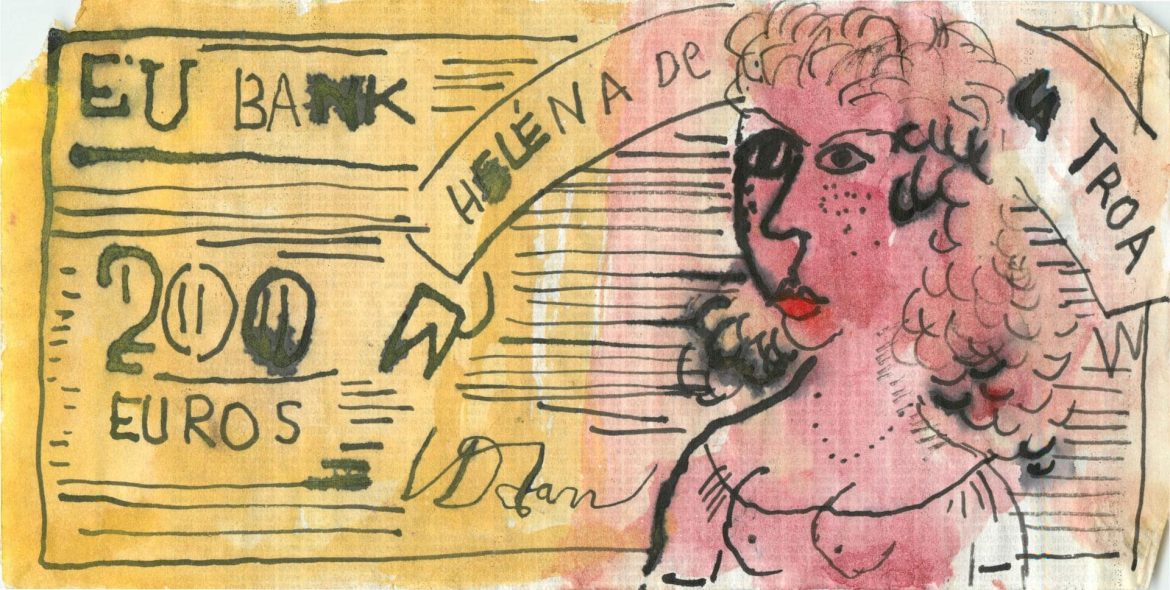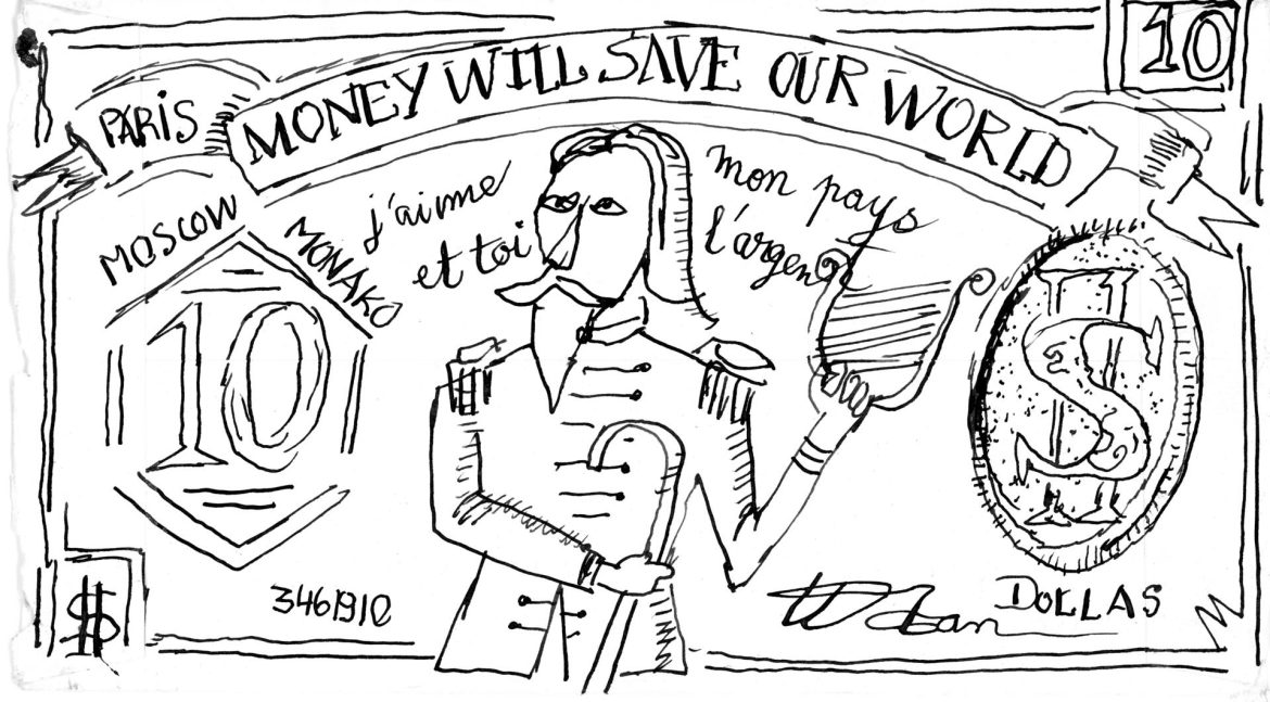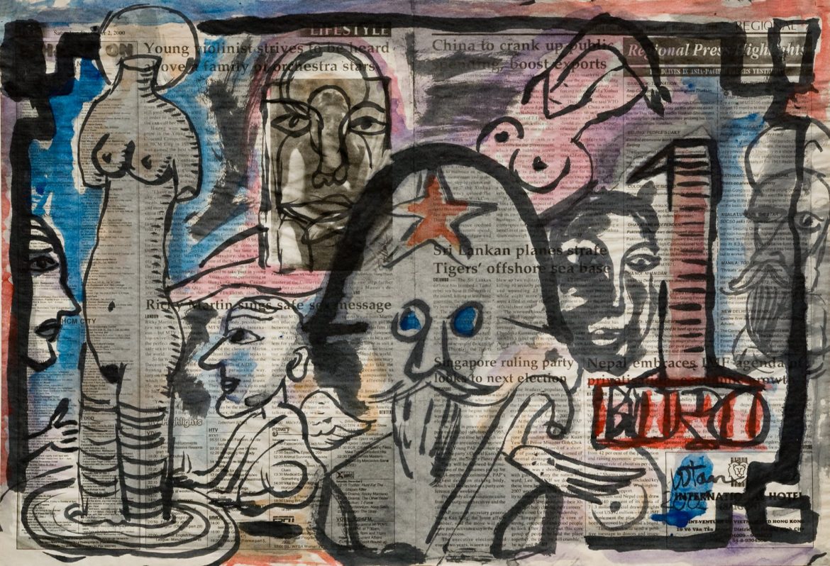 Paper-currency’s trade ethos, reinforced by Tan’s iconography sourced in a wide cultural and historical pool, exposes the roving eye as in Tan’s hands euros, Hong Kong dollars, lire, pounds and the mighty USD are a forum of playful social study allowing the artist to poke a sacred national institution from a host of vantage points. Tan’s selection of money as expressive idiom relates in part to the new place of capitalism in post-Doi Moi Vietnam. ❞